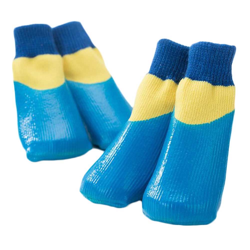 Home > 4 Pcs Dog Knitted Socks Pet Leg Socks Teddy Small Dog Waterproof Coated Socks Scratch Proof Protective Socks, Blue 4#