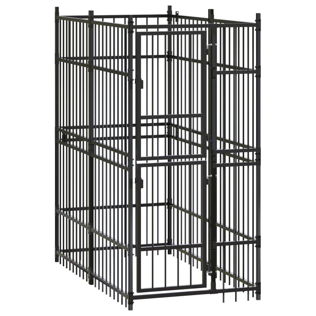 This outdoor dog kennel is a sturdy enclosure that provides comfort for your dogs, blending functionality with a stylish industrial vibe. Made from powder-coated steel, it offers a secure spot for your pets while looking great on balconies and in gardens. Its sleek black finish adds a modern touch and keeps it tough against the weather.