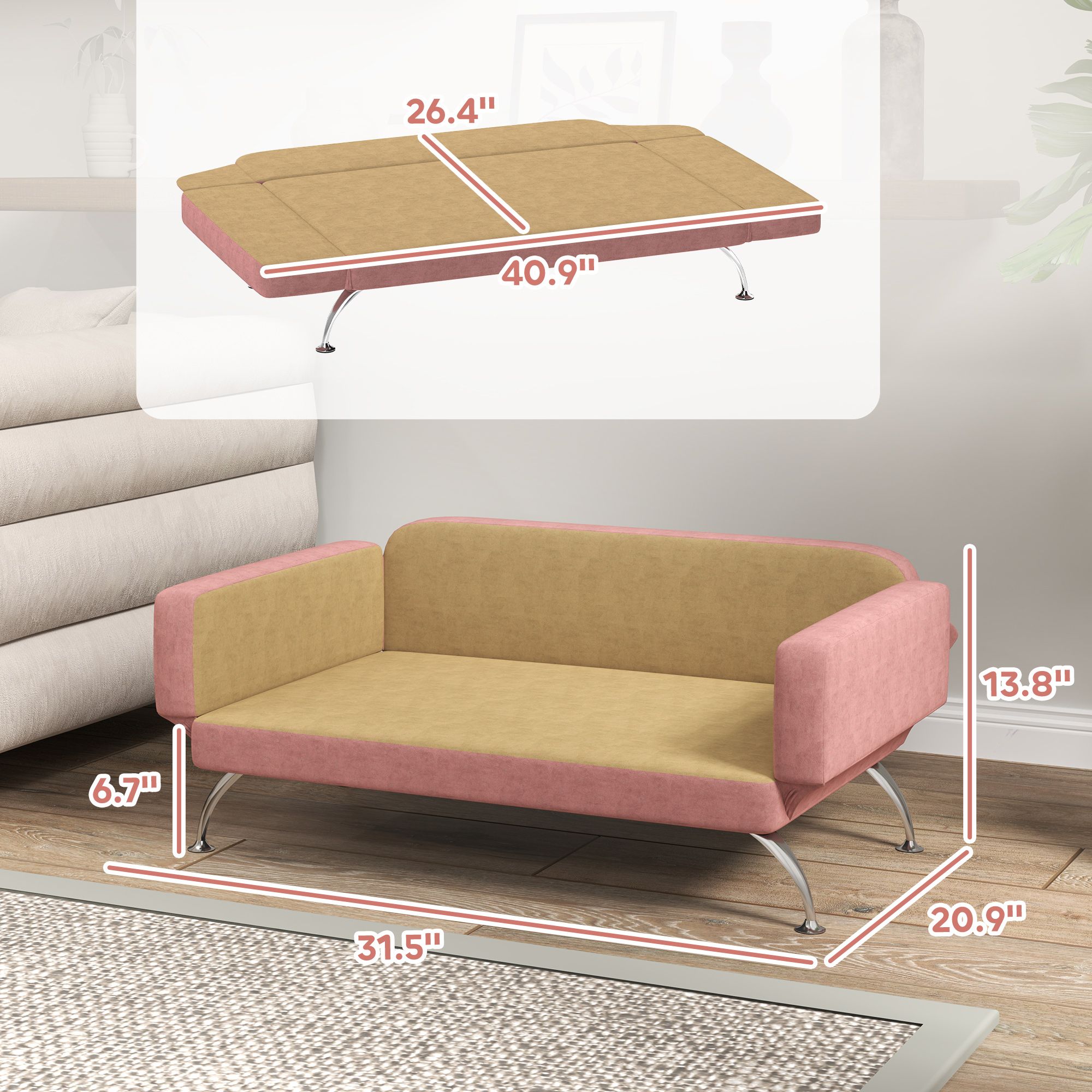 Dog Sofa Bed w/ Adjustable Armrest & Backrest for Small, Medium & Large Dogs, Pink
