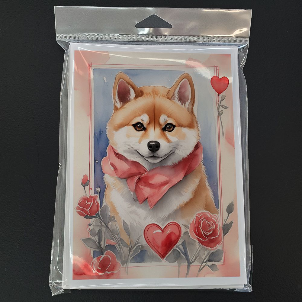 Greeting Cards Pack of 8 featuring breed specific Shiba Inu artwork. Celebrate Valentine's Day with this Valentine's Day . Celebrate special moments with Caroline's Treasures Printed Greeting Card Pack. This pack includes eight beautifully folded 5x7 cards, accompanied by eight matching white envelopes. With blank interiors, these cards provide ample space for your personalized messages and heartfelt holiday greetings. Each card features captivating full-color artwork, meticulously printed in our facility on high-quality 80 lb cover stock or 216 GSM. The super smooth finish of the white cards enhances the visual impact of the artwork, creating a truly stunning presentation. Designed by our talented in-house artists or licensed artists, the artwork on these cards showcases their creativity and attention to detail. From vibrant illustrations to captivating designs, each card tells its own unique story. Whether it's for birthdays, anniversaries, holidays, or any special occasion, Caroline's Treasures Greeting Card Pack is the perfect way to convey your heartfelt sentiments. Share joy, love, and warm wishes with these exquisite cards and make every moment unforgettable.