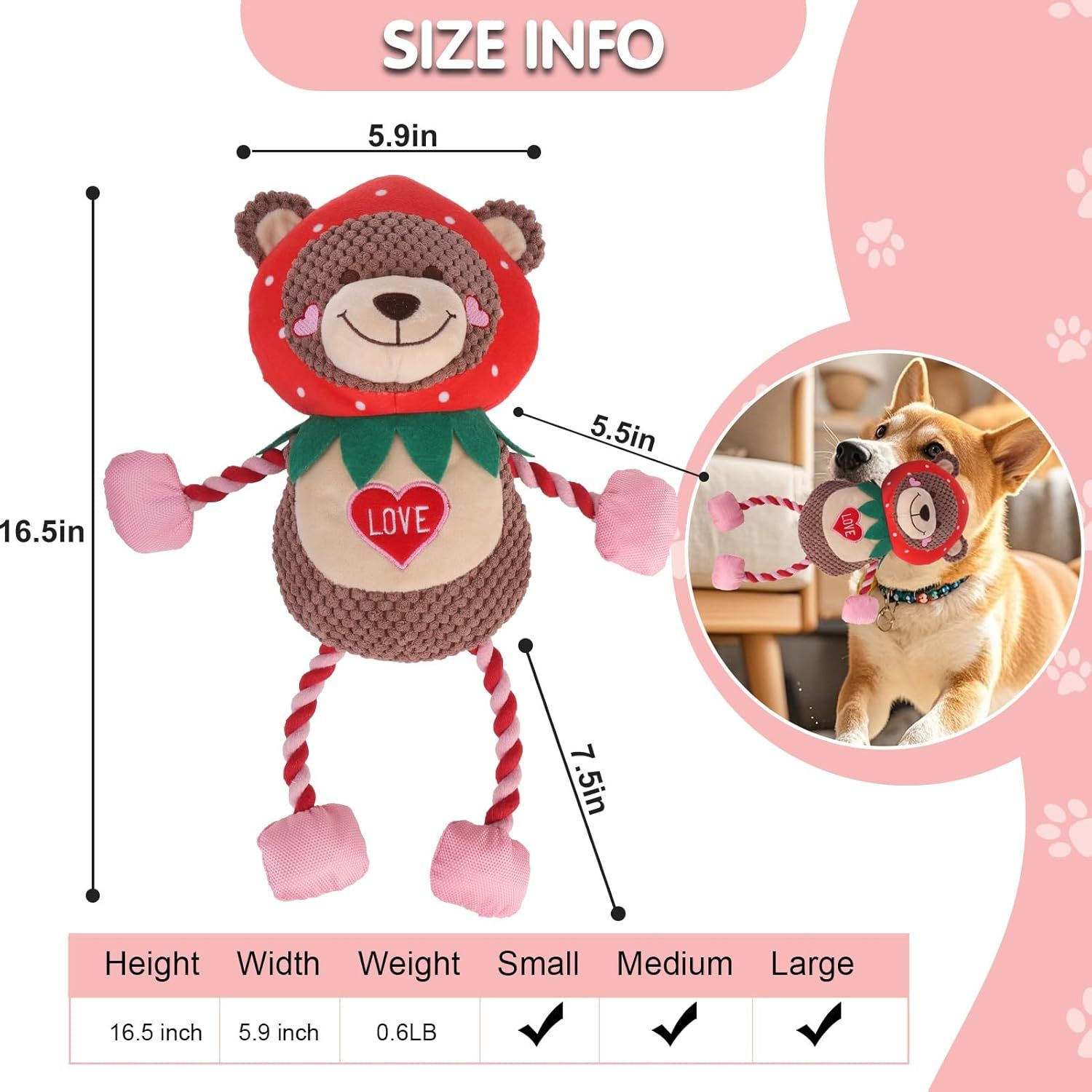 Valentine's Day Squeaky Dog Toys-Interactive Durable Plush Dog Toy with Crinkle Paper, Chew Toys Soft Fabric for Small, Medium, and Large Dogs to Keep Them Busy, Training Reward Pink Bear
