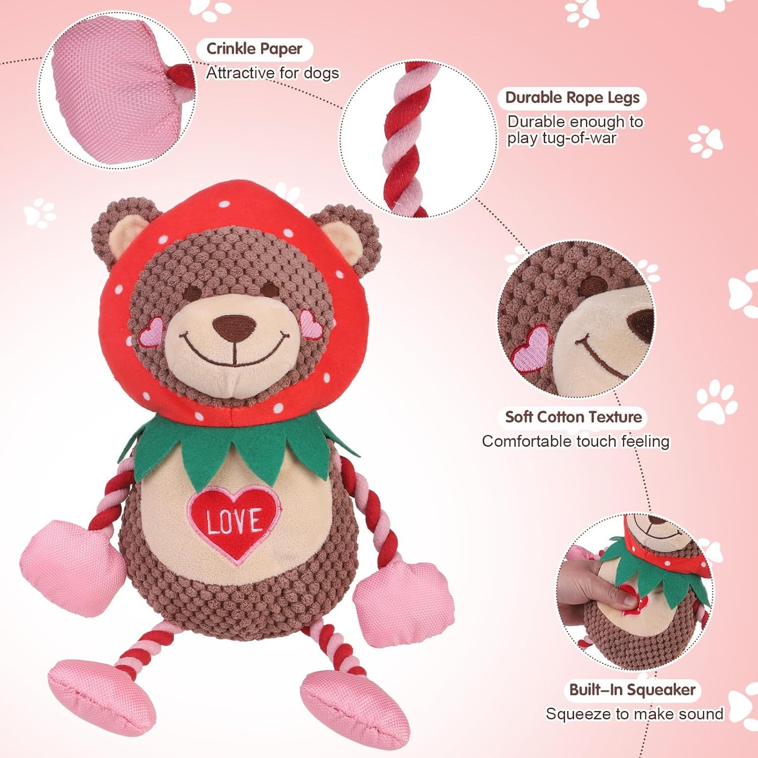 Valentine's Day Squeaky Dog Toys-Interactive Durable Plush Dog Toy with Crinkle Paper, Chew Toys Soft Fabric for Small, Medium