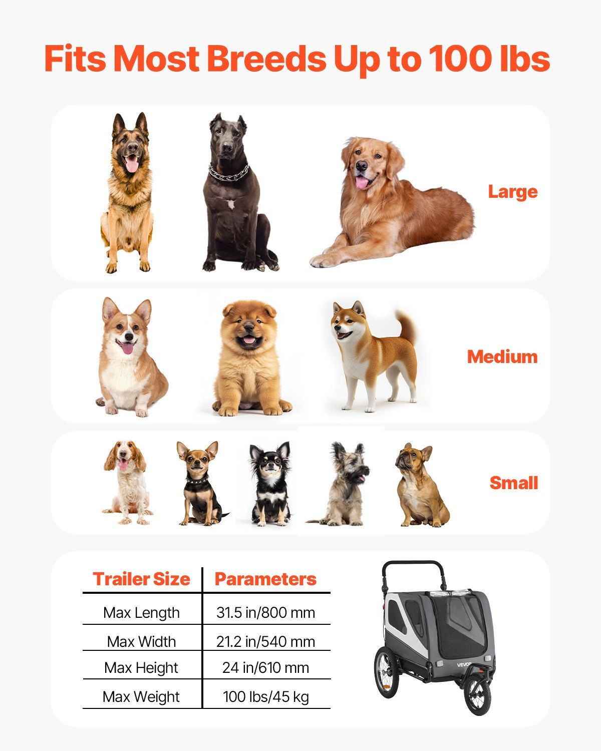 VEVOR Dog Bike Trailer, Supports up to 100 lbs, 2-in-1 Pet Stroller Cart Bicycle Carrier for Small & Large Dogs VEVOR Dog Bike Trailer, Supports up to 100 lbs, 2-in-1 Pet Stroller Cart Bicycle Carrier for Small & Large Dogs VEVOR Dog Bike Trailer, Supports up to 100 lbs, 2-in-1 Pet Stroller Cart Bicycle Carrier for Small & Large Dogs